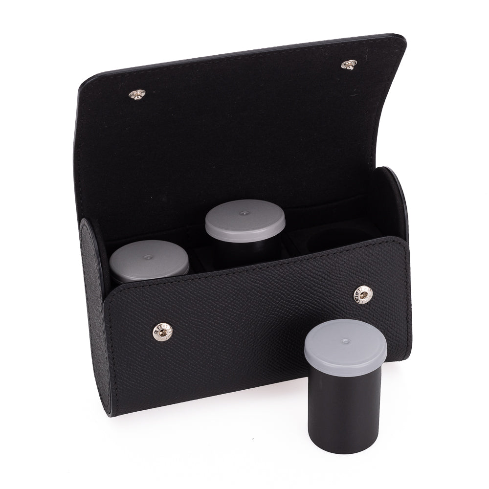 The Leica Film Roll Holder is a timeless companion for enthusiasts of analogue photography. It offers space for three SD cards and two film rolls — stylish, reliable, and high-quality.