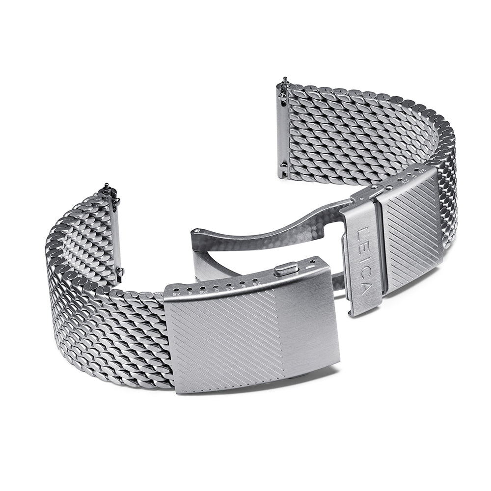 Designed exclusively for the Leica ZM 1 and ZM 2 watches, this stainless steel Milanaise bracelet combines strength, comfort, and understated elegance. The solid construction and fully brushed silver finish create a refined look that complements both casual and formal styles.