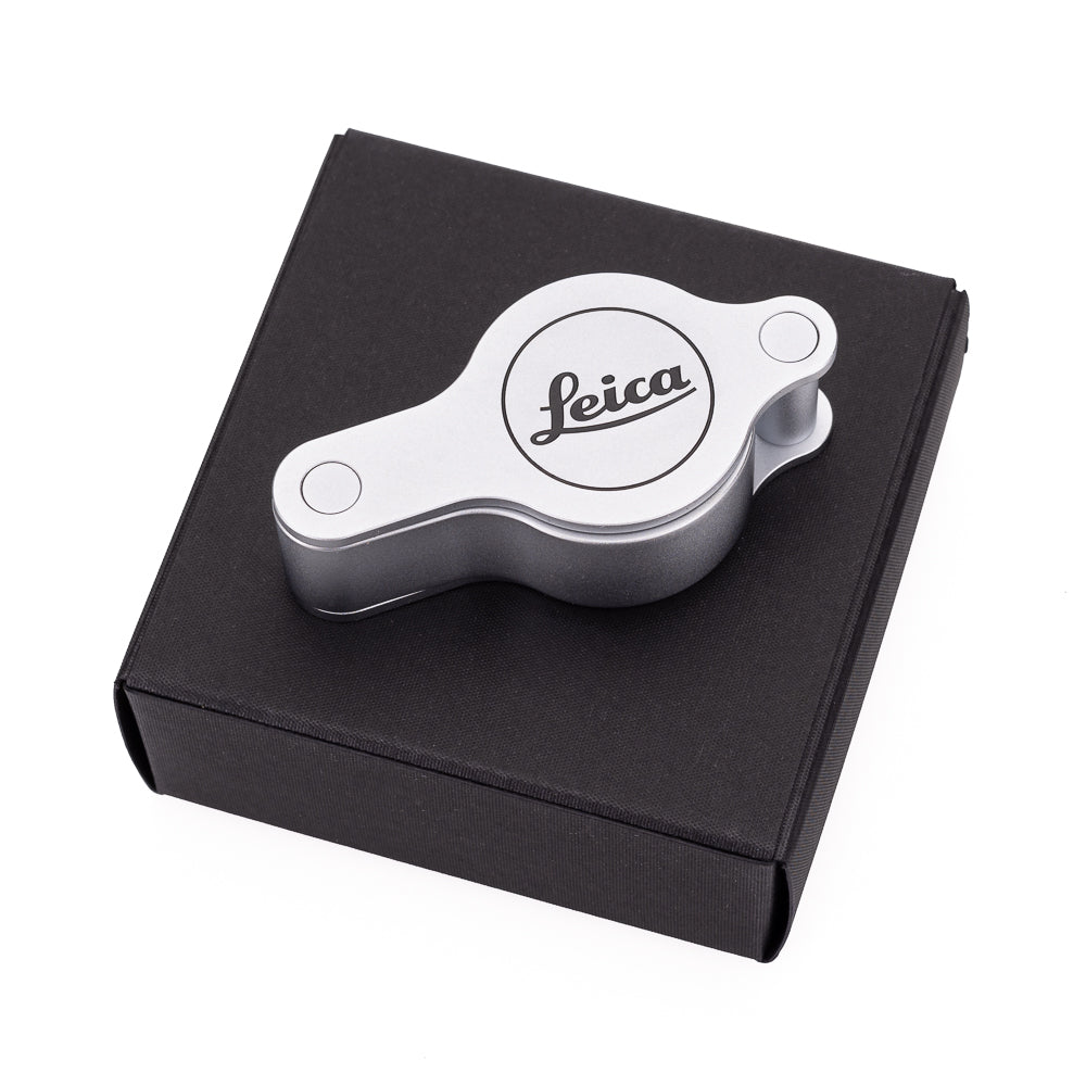 The magnifier is made from 100% chrome-plated brass. The design features the engraved “Leica” lettering on the front and “100” anniversary label on the reverse. A true collector’s item for Leica fans.