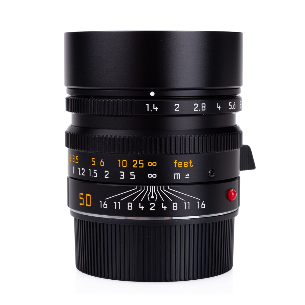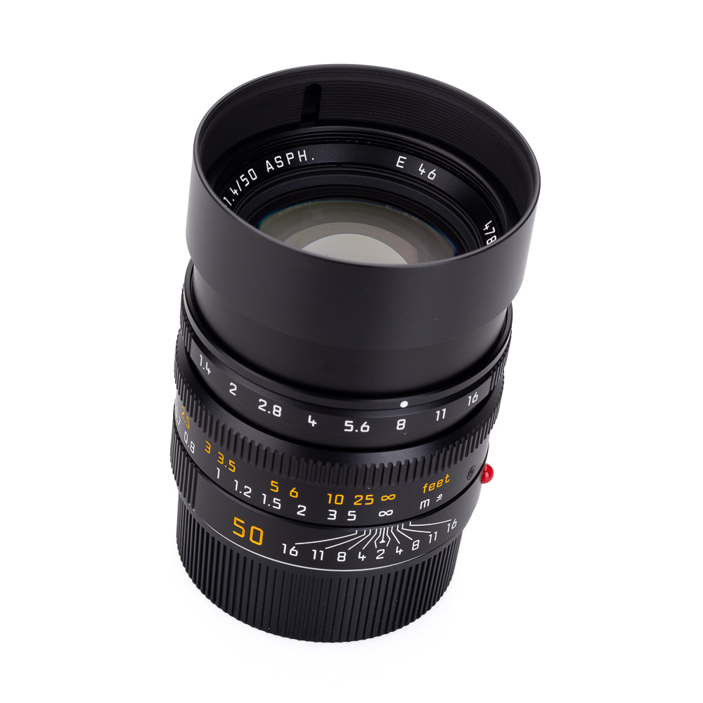 The Leica 50mm f/1.4 Summilux was made between 1961 and 2004 with several iterations. The lens delivers high-contrast images, with high-resolution detail, even at its widest aperture, and down to its minimum focusing distance. The properties of this lens not only make it ideal for any photo situation demanding a handy all-rounder with the natural image angle of the 50 mm standard focal length, but also for available light situations, selective-focus shots, and even fine art photography - usually the preserve of much larger formats. Its wide-ranging versatility also makes it a top choice in assembling a Leica M lens outfit.