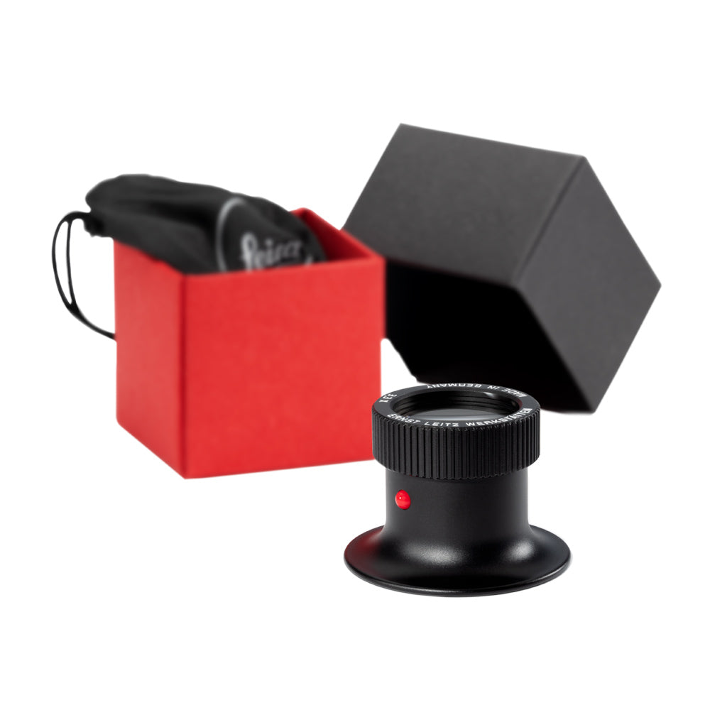 Spherical Leica lens made of the highest quality glass, anti-reflective coating on both sides, easily removable for cleaning via screw-on top, push button as a design element.